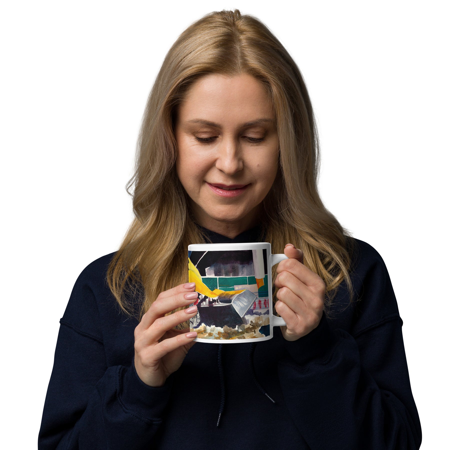 Kick off your day with motivation. Our "Diggin' It" mug features a bulldozer at work at a downtown Chicago, IL construction site. This illustration is an original watercolor painting by Jane M. Mason. Buy yourself and your buddies a high quality ceramic mug with a bold, contemporary design.